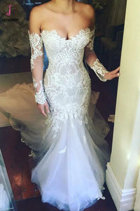 Mermaid Sweetheart Long Sleeves Court Train Tulle Wedding Dress with Appliques KPW0561