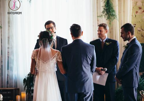 Kateprom Charming Cap Sleeves Floor Length Chiffon Wedding Dress with Beading KPW0707