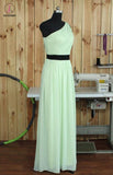 Bridesmaid Dresses With Sash,One Shoulder Chiffon Bridesmaid Dress,Maid of Honor Dress KPB0037
