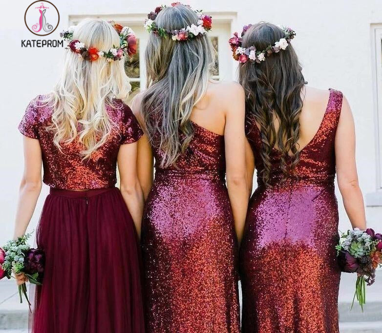 Shiny Burgundy Sequins Bridesmaid Dresses Long Mismatched Bridesmaid Dresses KPB0192