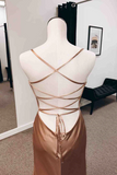 Backless Champagne Long Prom Dress with High Slit, Formal Graduation Evening Dress KPP1719