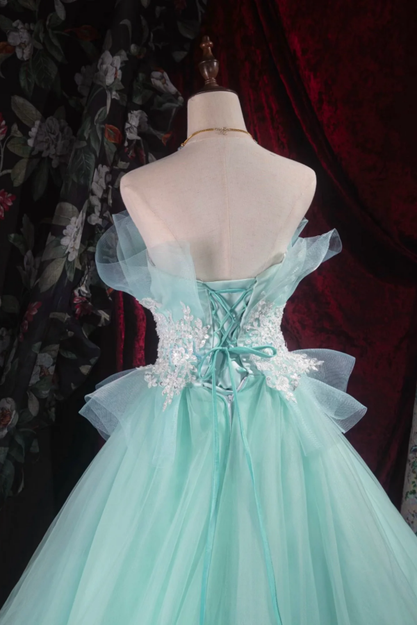 A Line Floor Length Lace Tulle Blue Green Long Prom Dress KPP2330