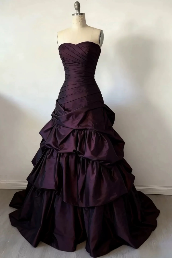 A Line Sweetheart Taffeta Dark Wine Red Long Prom Dress KPP2348