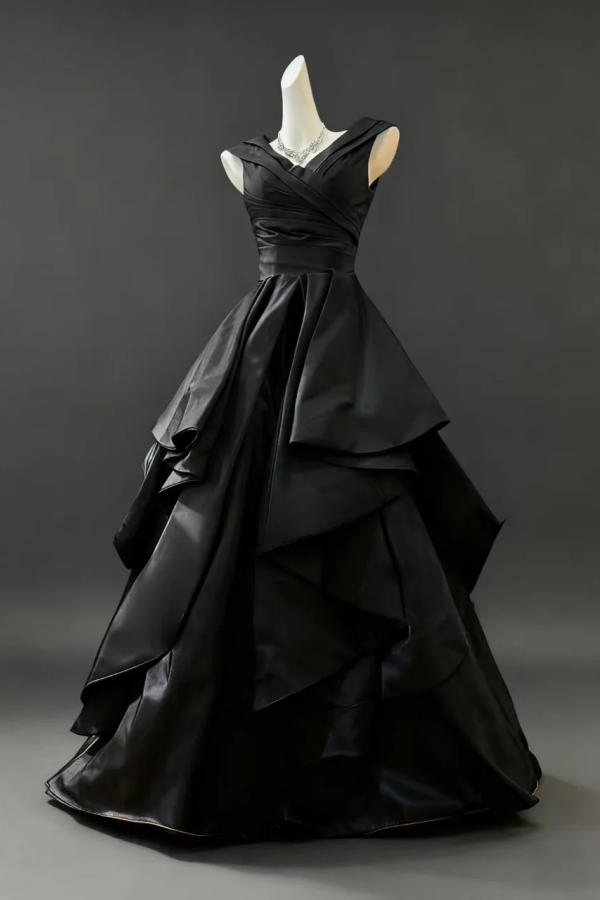 A Line V Neck Satin Floor Length Black Prom Dress, Black Formal Dress KPP2357