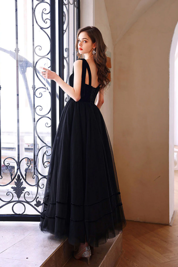 Black Sweetheart Tulle Long Prom Dress, Black Tulle Formal Graduation Dresses KPP2333