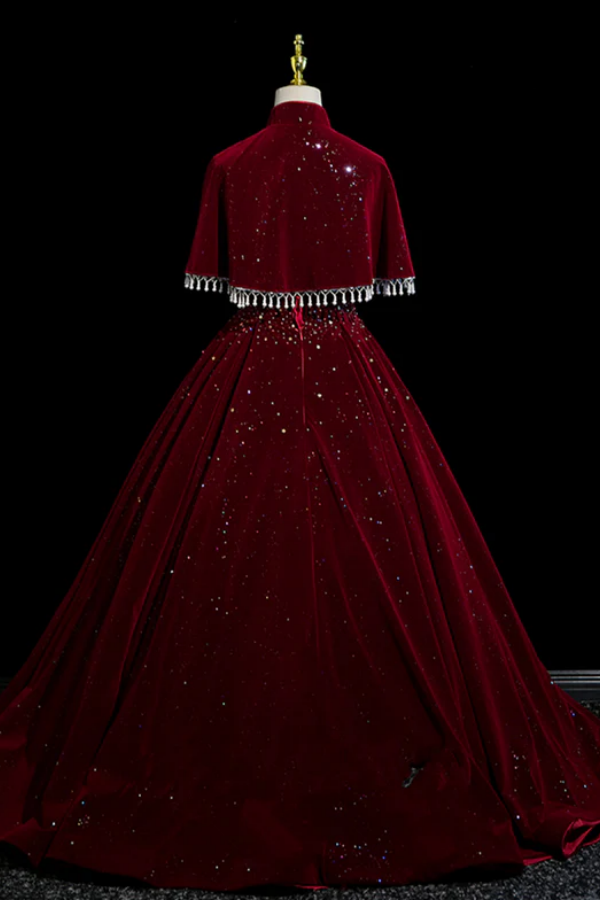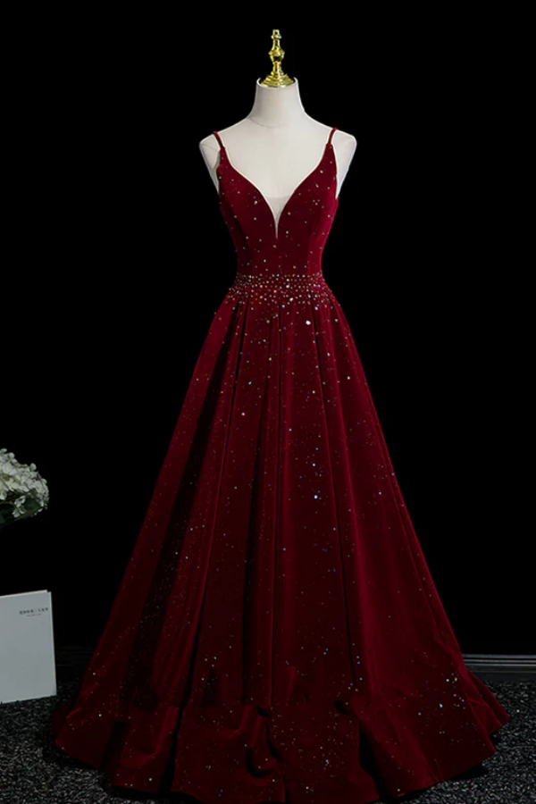 Wine Red Velvet V Neckline Long Party Dress Evening Dress, Prom Dress KPP2242