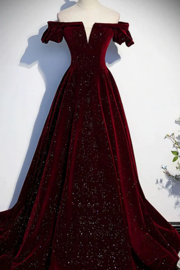 Sparkling Burgundy Sequins Mermaid V-neck Sweep Train Party Dress,Prom Gown KPP0314