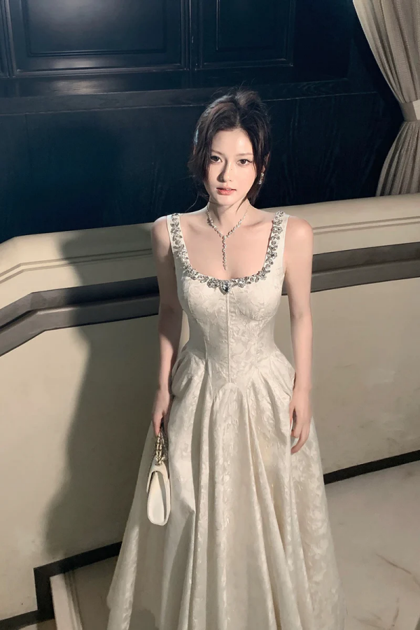 Elegant Square Neck Sleeveless Evening Gown with Rhinestone Embellishments KPP2312