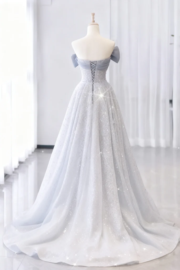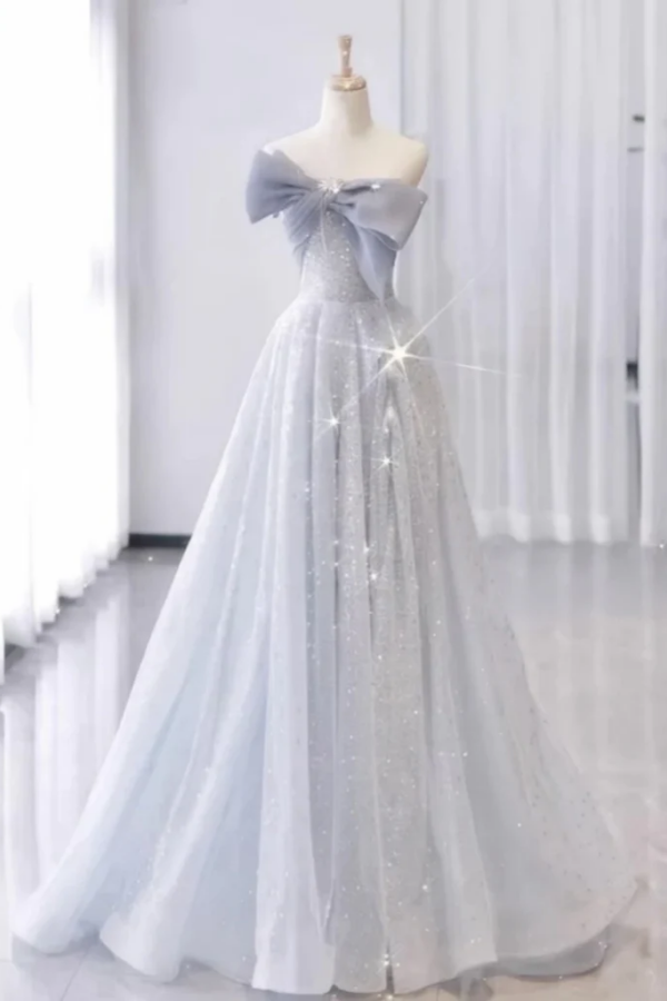 One Shoulder Gray Tulle Long Prom Dresses, Formal Evening Dresses KPP2307