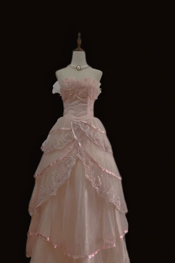 Pink Tulle with Lace Princess Formal Dress, Cute Pink Tulle Prom Dress KPP2030
