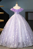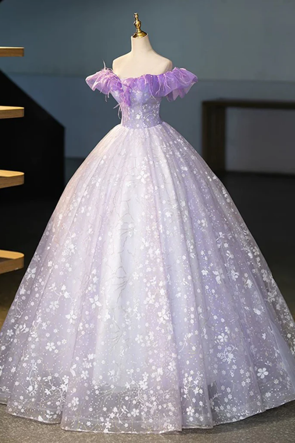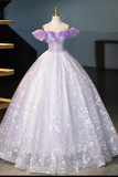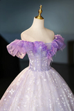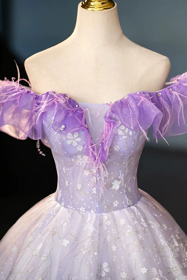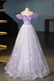 A Line Off Shoulder Tulle Lace Purple Long Prom Dress, Long Formal Dress KPP2174