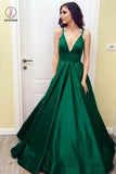 Simple V-Neck Floor-Length Satin Burgundy Prom Dress with Pockets KPP0004