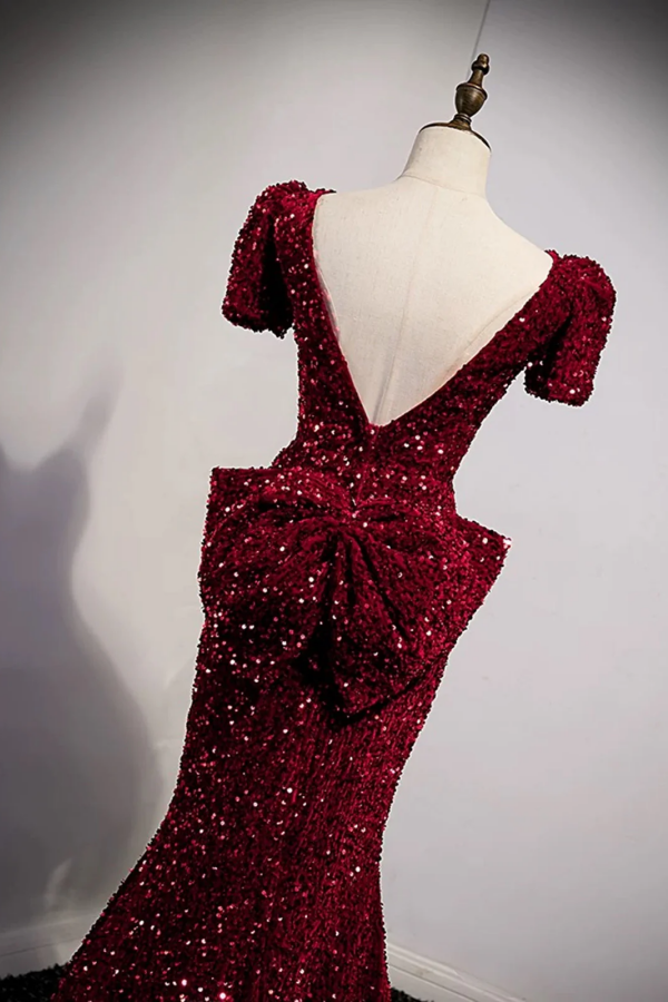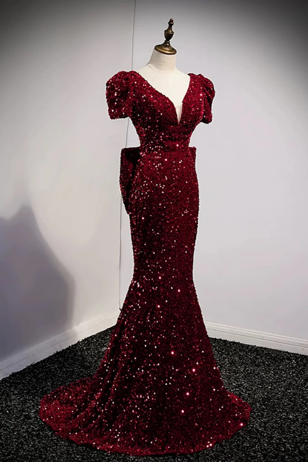 Wine Red Mermaid Sequins Long Prom Dress Party Dress, Evening Dress KPP2227