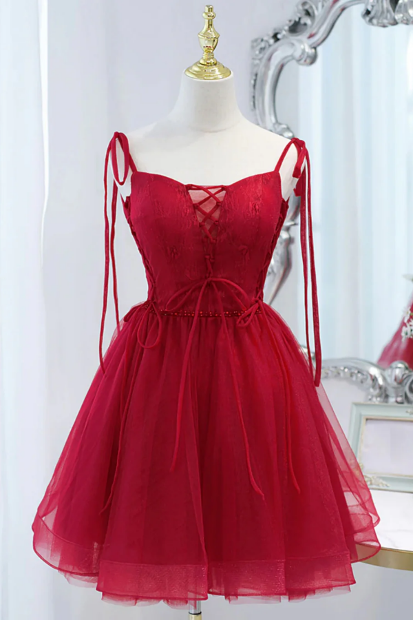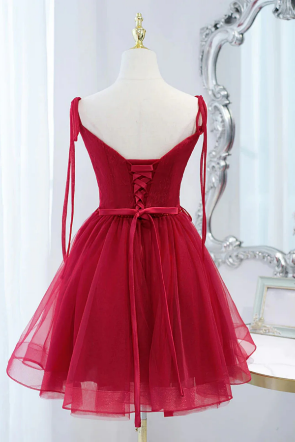 Short Red Tulle Lace Prom Dresses, Formal Homecoming Dresses KPH0793