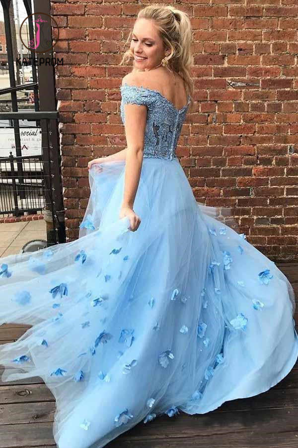 Kateprom Two Piece Off the Shoulder Tulle Prom Dress with Lace, A Line 2 Piece Long Formal Dress KPP0898