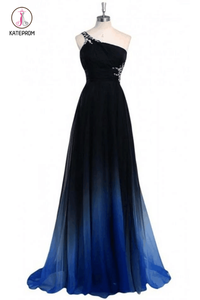 Ombre A Line One Shoulder Beading Chiffon Prom Dress,Gradient Formal Dress KPB0103