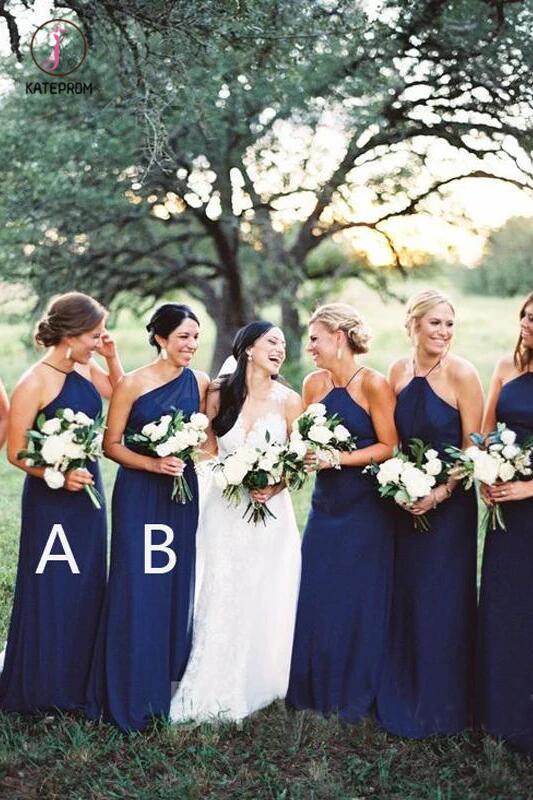 Mismatched Deep V-Neck Bridesmaid Dress, Long Cheap Bridesmaid Gown KPB0175
