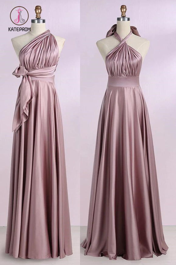 Blush Convertible Prom Bridesmaid Dress, Cheap Floor Length Bridesmaid Dresses KPB0178