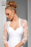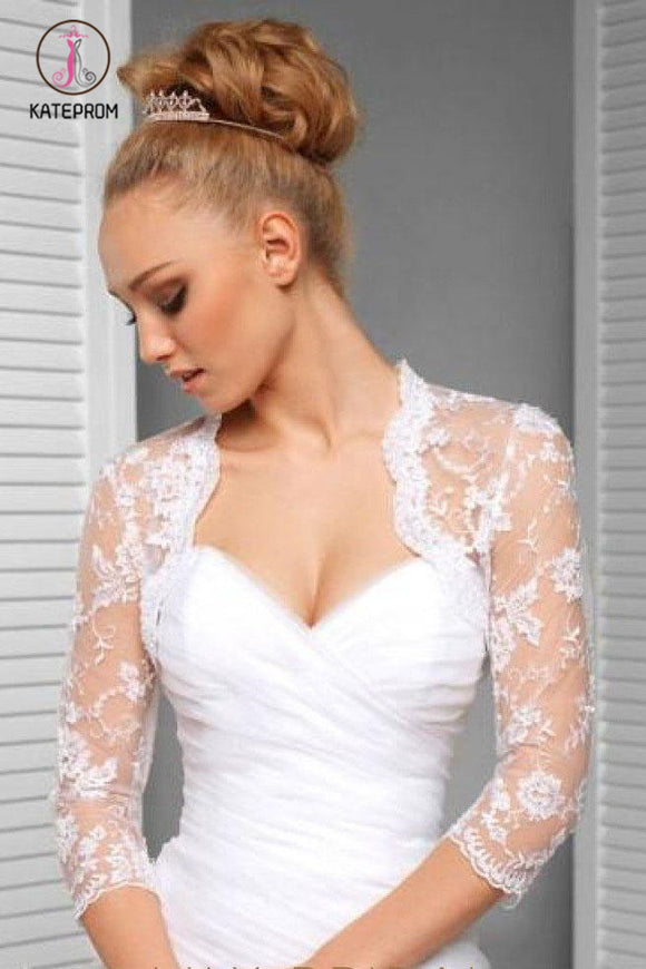 Kateprom 3/4 Sleeve Exquisite Lace Applique Bridal Jacket Scalloped Top Neck, Wedding Jacket Wraps KPJ0006