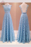 A-line Blue Sleeveless Lace Floor-length Prom Dresses,Sexy Evening Dresses KPP0372