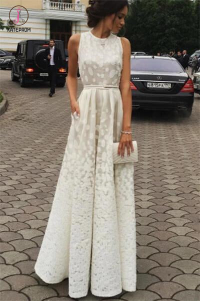 A-line Ivory Jewel Sleeveless Floor-length Lace Prom Dresses,Cheap Evening Dress,Formal Dress KPP0228