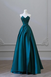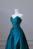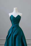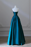 A Line Satin Floor Length Prom Dress, Blue Strapless Evening Party Dress KPP2118