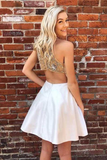 A line Satin Sleeveless Tulle Beaded Homecoming Dress Short Prom Dress KPH0698