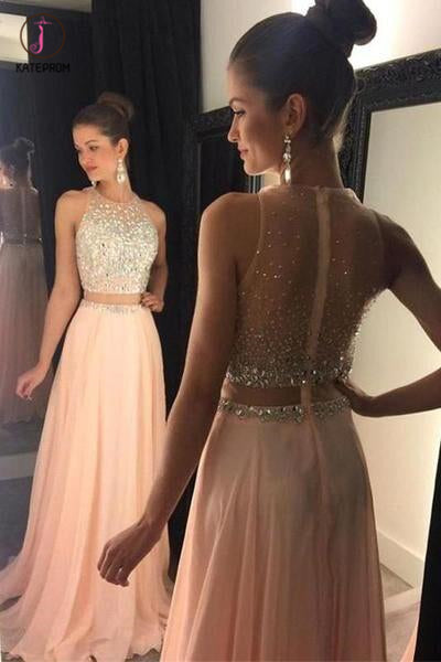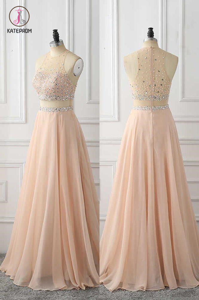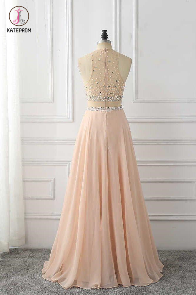 A Line Sleeveless Prom Dress with Rhinestone, Cheap Chiffon Long Prom Dress KPP0824