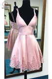 A-line Spaghetti Straps Pink Satin Homecoming Dress,Sweet 16 Dress,Short V neck Prom Dress KPH0231