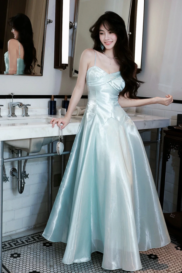 A Line Sweetheart Neck Floor Length Blue Prom Dress KPP2271