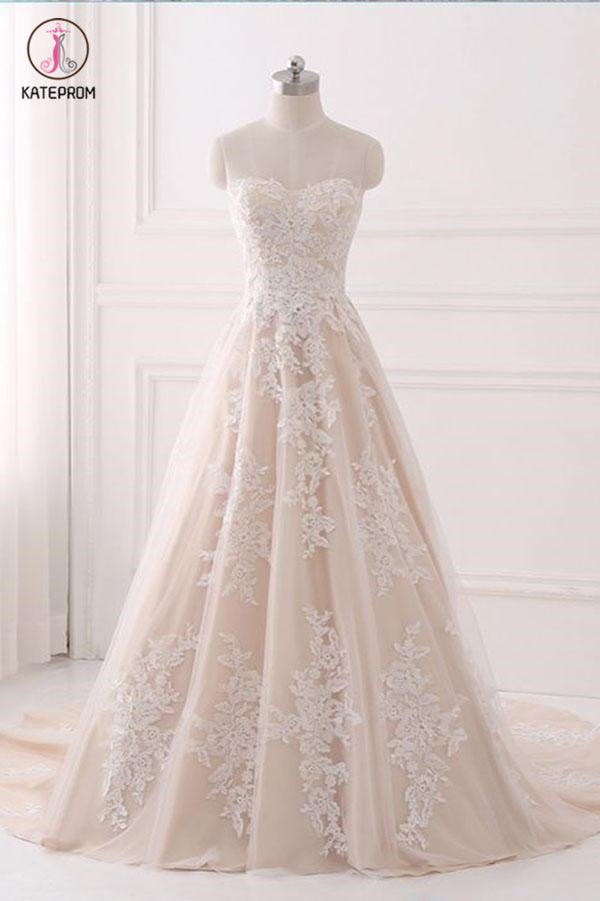 A Line Sweetheart Tulle Wedding Dress with Appliques,Strapless Prom Dresses KPP0463