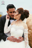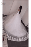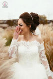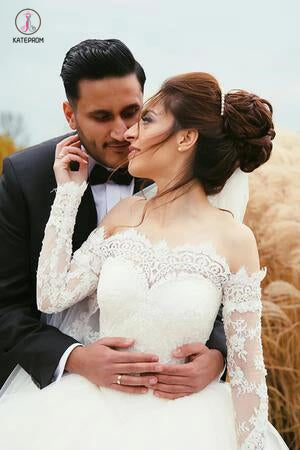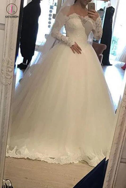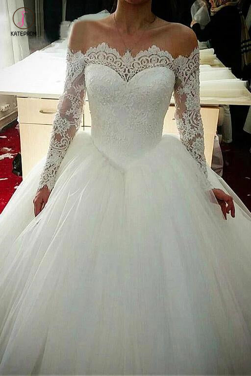 Ball Gown Long Sleeve Wedding Dress with Lace, Off the Shoulder Tulle Bridal Dress KPW0232