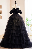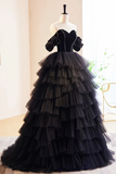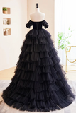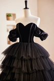 Black Velvet and Tulle Long Prom Dress, A Line Off the Shoulder Formal Evening Dress KPP2046