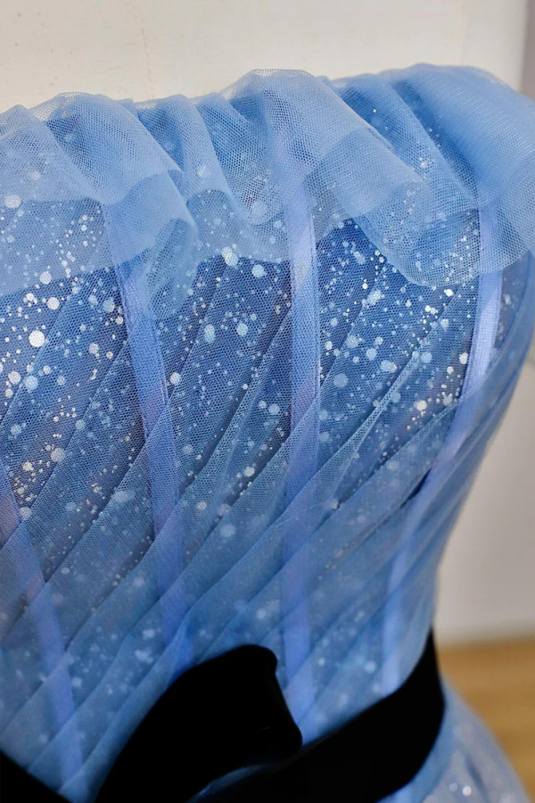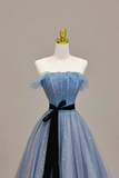 Blue Tulle A Line Strapless Long Prom Dress, Beautiful Evening Party Dress KPP2037