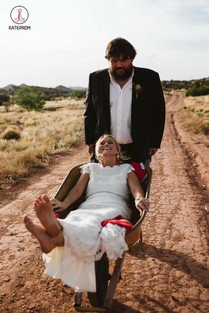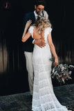 Boho Mermaid Lace Beach Wedding Dresses Cap Sleeve Bohemian Bridal Gown KPW0275
