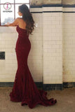 Burgundy Lace Prom Dress, Mermaid Sweetheart Strapless Lace Evening Dresses KPP0846