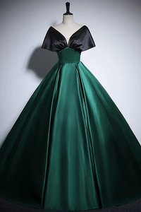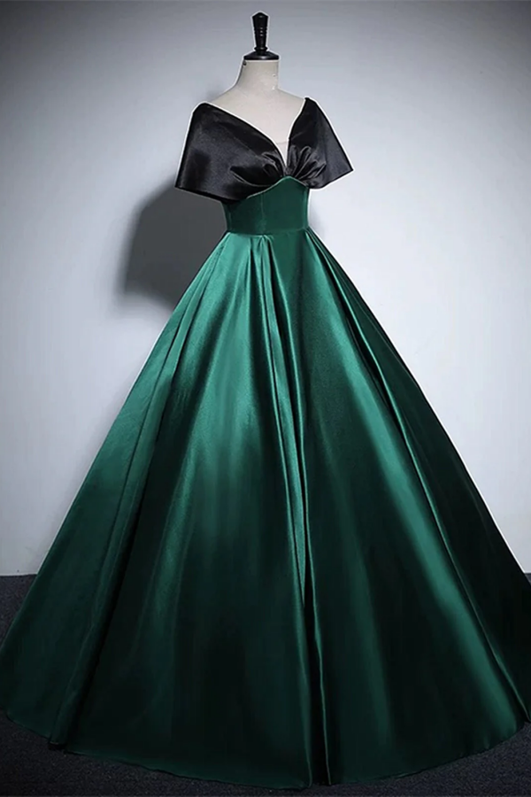 Chic Black and Green Satin Off Shoulder Long Party Dress, Floor Length Prom Dress KPP2075