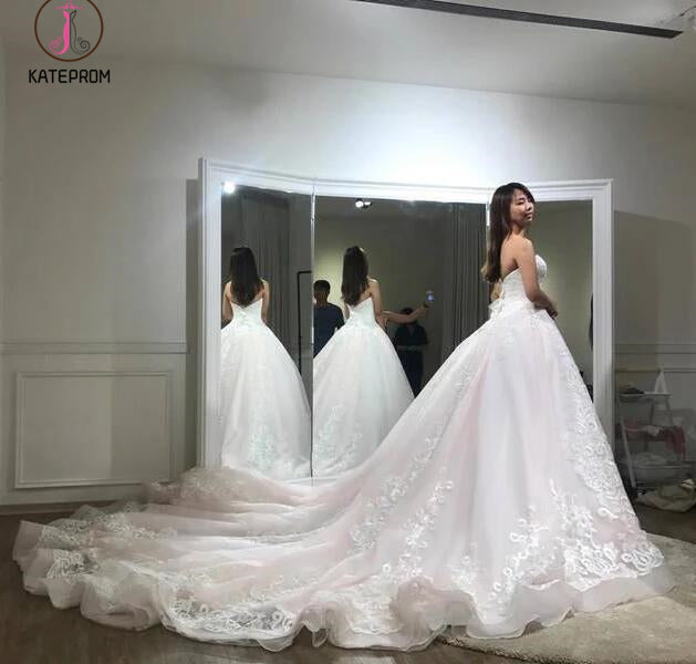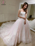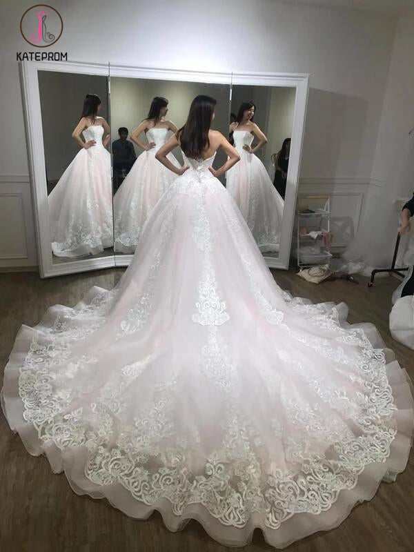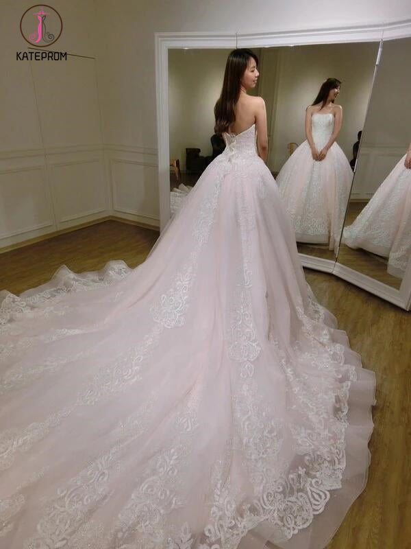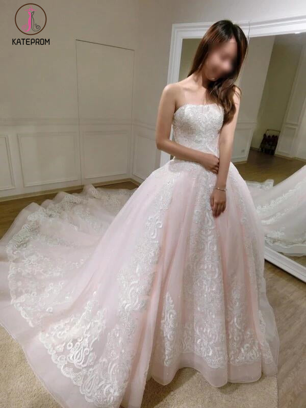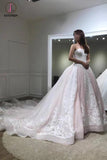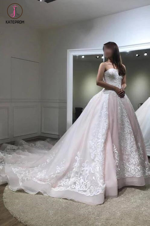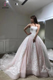 Gorgeous Ball Gown Baby Pink Lace Appliques Wedding Gown,Princess Bridal Dresses KPW0106