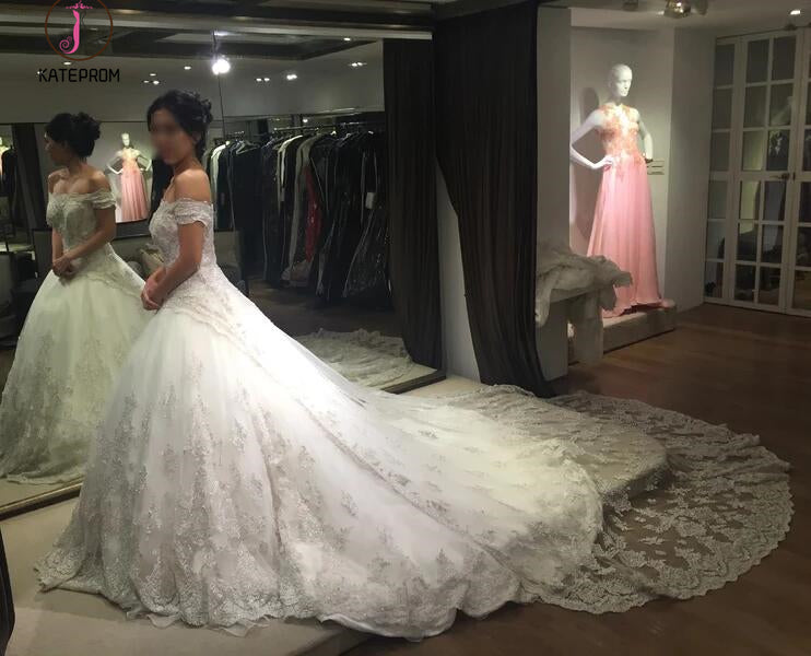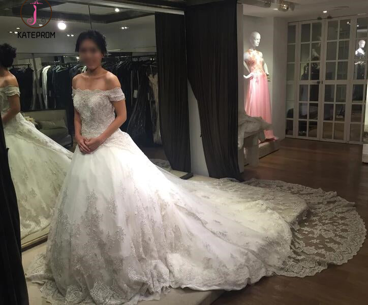 Gorgeous Ball Gown Off-the-shoulder Chapel Train Lace Wedding Dresses,Bridal Dresses KPW0126