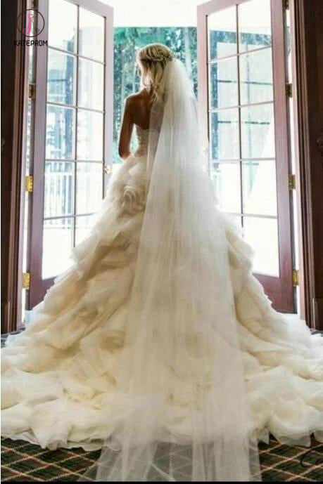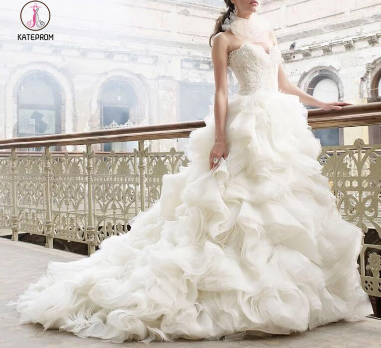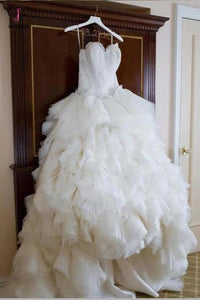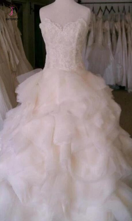 Gorgeous Ivory Sweetheart Sweep Train Layers Ruffles Wedding Dresses,Princess Bridal Dress KPW0143