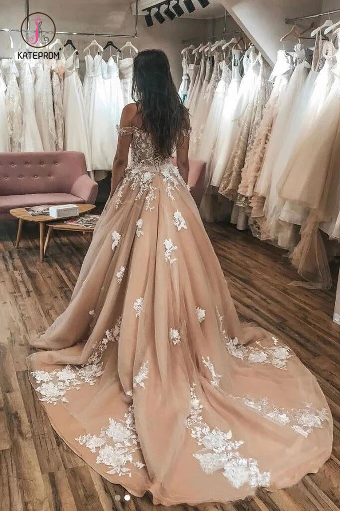Gorgeous Off the Shoulder Tulle Lace Appliques Wedding Dress, Puffy Bridal Dresses KPW0516