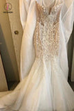 Gorgeous Strapless Tulle Mermaid Wedding Dresses, Long Bridal Dress with Appliques KPW0383