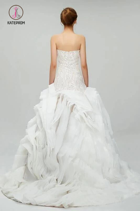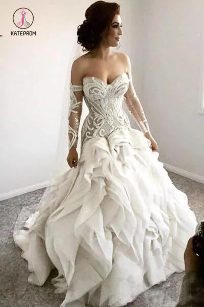 Gorgeous Sweetheart Wedding Dress with Detachable Sleeves, Unique Bridal Dress with Ruffles KPW0534