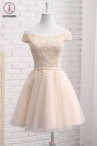 Kateprom A Line Off Shoulder Tulle Short Homecoming Dress with Appliques, Mini Sweet 16 Dress KPH0408