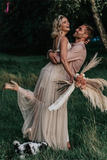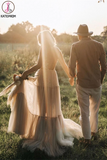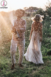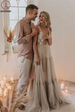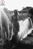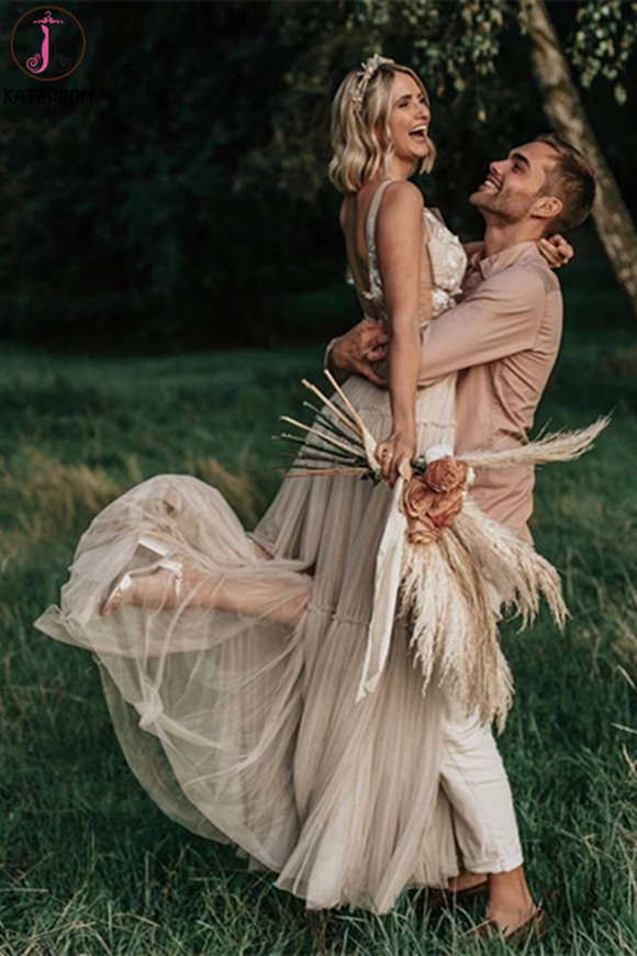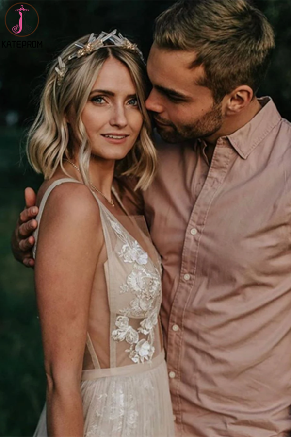 Kateprom Attractive V neck Appliques A Line Rustic Backless Wedding Dress KPW0628