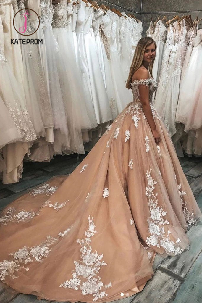 Kateprom Ball Gown Long Tulle Off the Shoulder Tulle Quinceanera Dress with Lace Appliques KPP1017