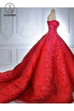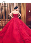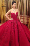 Kateprom Ball Gown Red Sweetheart Tulle Prom Dresses with Appliques, Puffy Quinceanera Dress KPP0995