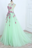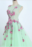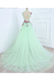 Kateprom Beautiful A line Scoop Blue Long Prom Dress Floral Formal Dresses Evening Gowns KPP1536