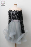 Kateprom Black Lace Homecoming Dress, Long Sleeve Tulle Short Graduation Dresses KPH0441