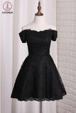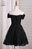 Kateprom Black Off Shoulder Lace Homecoming Dress, A Line Cheap Short Graduation Dresses KPH0433